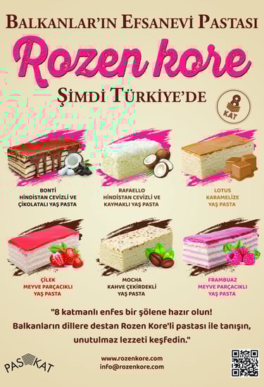 Rozen Kore, Balkanların en bilinen sekiz katlı kekiyle tatlı dünyasında kendine yer bulmuş bir markadır. Taze ve kaliteli malzemelerle hazırlanan keklerimiz, mutluluğunuza lezzet katmayı amaçlıyor.